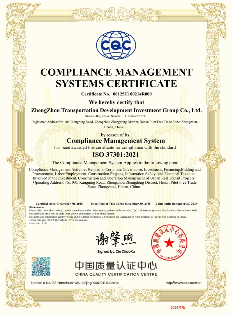 鄭州交發(fā)集團(tuán)成功通過(guò)合規(guī)管理體系國(guó)際國(guó)內(nèi)雙認(rèn)證