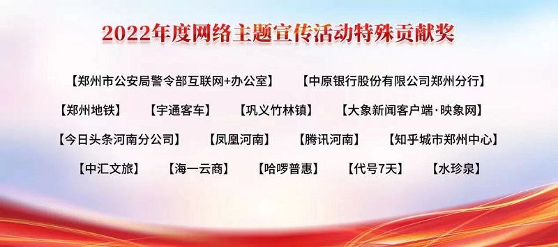12月13日,在鄭州市委網(wǎng)信辦2022年度鄭州市網(wǎng)絡(luò)主題活動評選中,公司獲得特殊貢獻獎。