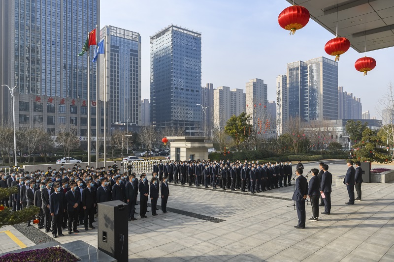 33193公司舉行2021年春節(jié)升旗儀式暨 鄭州市平安建設(shè)基層創(chuàng)建示范單位揭牌儀式