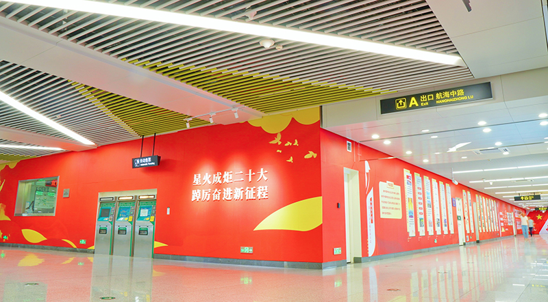 為充分發(fā)揮地鐵宣傳載體作用,將地鐵車站打造成為創(chuàng)新型、學(xué)習(xí)型的移動(dòng)宣傳陣地,深入持久開展黨的創(chuàng)新理論學(xué)習(xí)宣傳,鄭州地鐵在5號(hào)線齊禮閻站打造“星火成炬二十大 踔厲奮進(jìn)新征程”黨建主題車站。