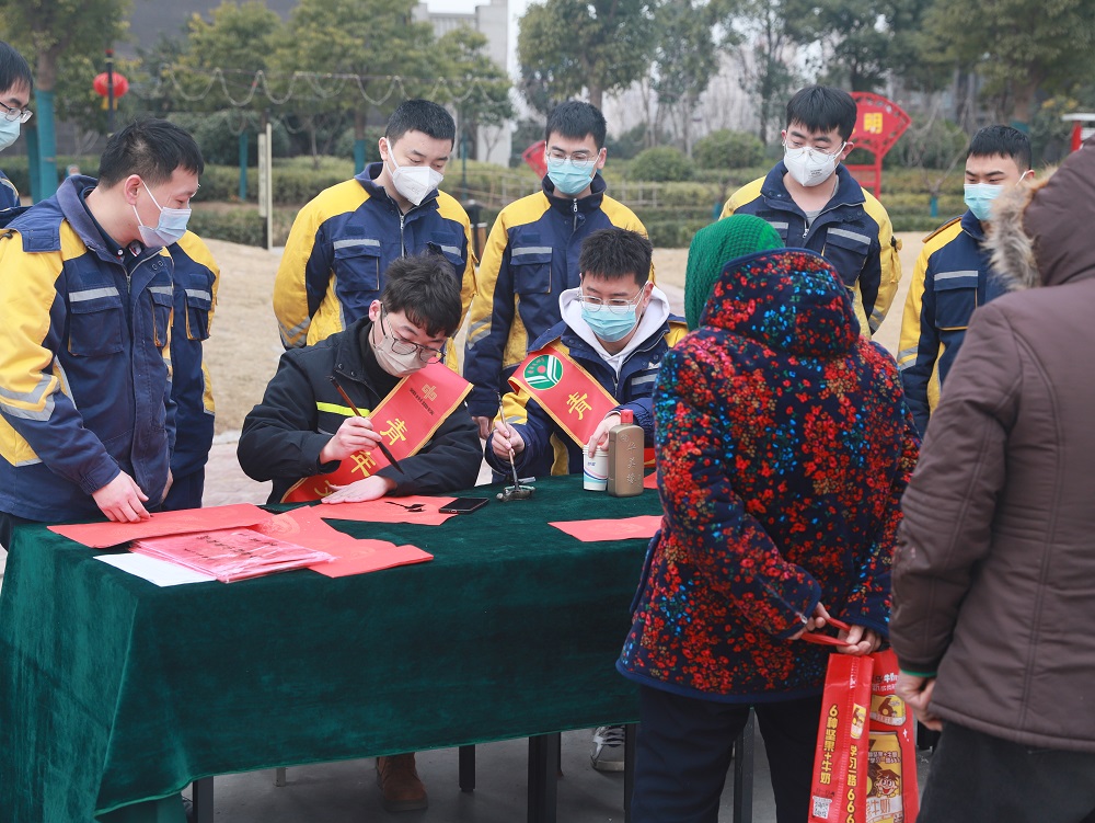 為全面貫徹落實(shí)黨的二十大精神,充分發(fā)揮新時(shí)代文明實(shí)踐中心作用,以真情服務(wù)暖人心、聚民心、筑同心,營(yíng)造喜慶安康、昂揚(yáng)向上的節(jié)日氛圍,1月19日上午,車輛中心車輛六室綜合技術(shù)組、車輛一室“青年文明號(hào)”聯(lián)合歡河村黨委在活動(dòng)中心開展“喜迎新春寫對(duì)聯(lián),翰墨飄香暖人心”活動(dòng),并現(xiàn)場(chǎng)為村衛(wèi)生室、村委、轄區(qū)居民書寫贈(zèng)送春聯(lián),把新春愿望和美好祝福送到千家萬(wàn)戶,營(yíng)造歡樂祥和的節(jié)日氛圍。