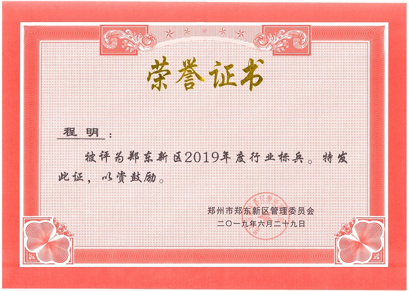 砥礪前行 不忘初心——地鐵集團供建中心副主任程明喜獲鄭東新區(qū)2019年度行業(yè)標兵