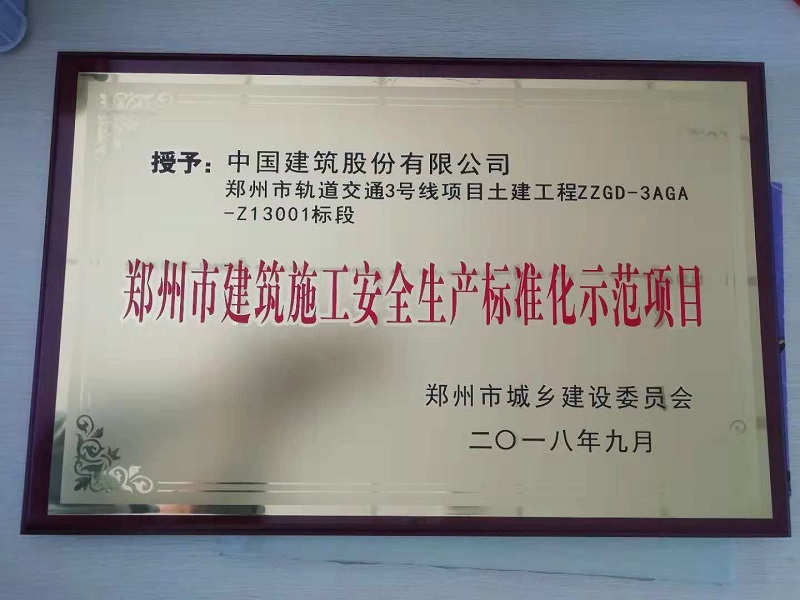 近日,鄭州市軌道交通3號線世行3001標、世行3002標、A2部分三工區(qū)等項目,先后榮獲鄭州市城鄉(xiāng)建設委員會頒發(fā)的“鄭州市建筑施工安全生產(chǎn)標準化示范項目”獎牌及榮譽證書。